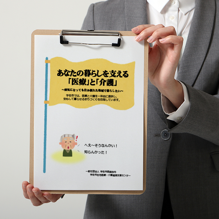 市内の病院・診療所、歯科診療所、薬局、地域包括支援センター、居宅介護支援事業所、宇佐市役所介護保険課等にご協力いただき、住民の皆さまがご自由にお取りできるよう、受付窓口等に置いていただいています。