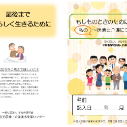 当センターでは、平成30年度に在宅医療・介護に関する住民向けの啓発パンフレットを作成しています。このパンフレットは、住民の皆さまが住み慣れた場所で最後まで自分…